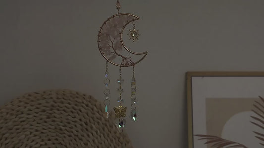 Tree of Life Prism Crystal Moon Dream Catcher - Pink