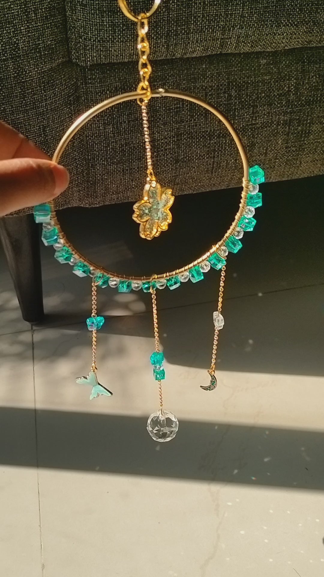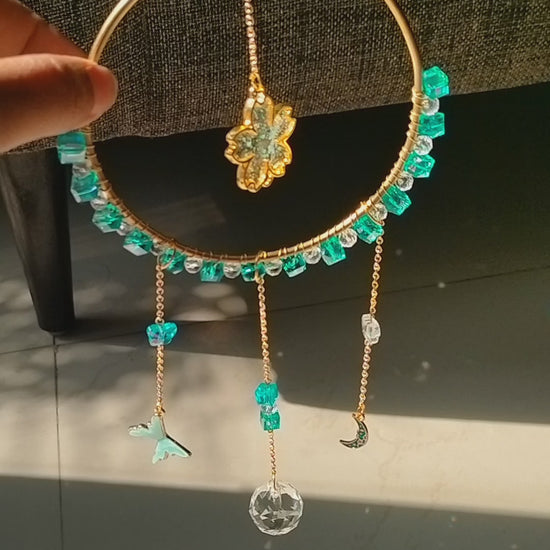 Expertly handcrafted with beautiful blue beads and a round crystal, this AB suncatcher is the perfect addition to any home. The stunning design adds a touch of elegance while capturing the sunlight to create a mesmerizing display of colors. Enhance your space with this unique and one-of-a-kind piece.