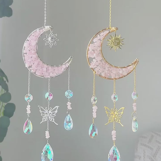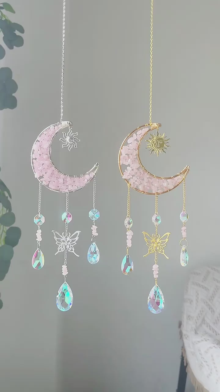 The Crescent Butterfly Suncatcher is a delicate decorative piece available in elegant gold and silver finishes. Featuring an intricately adorned butterfly, it captures and reflects light beautifully, adding a touch of sophistication and natural charm to any window or indoor space. Designed for those who appreciate refined craftsmanship and subtle elegance.